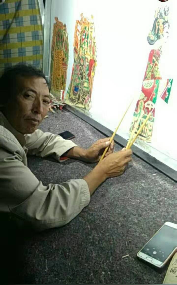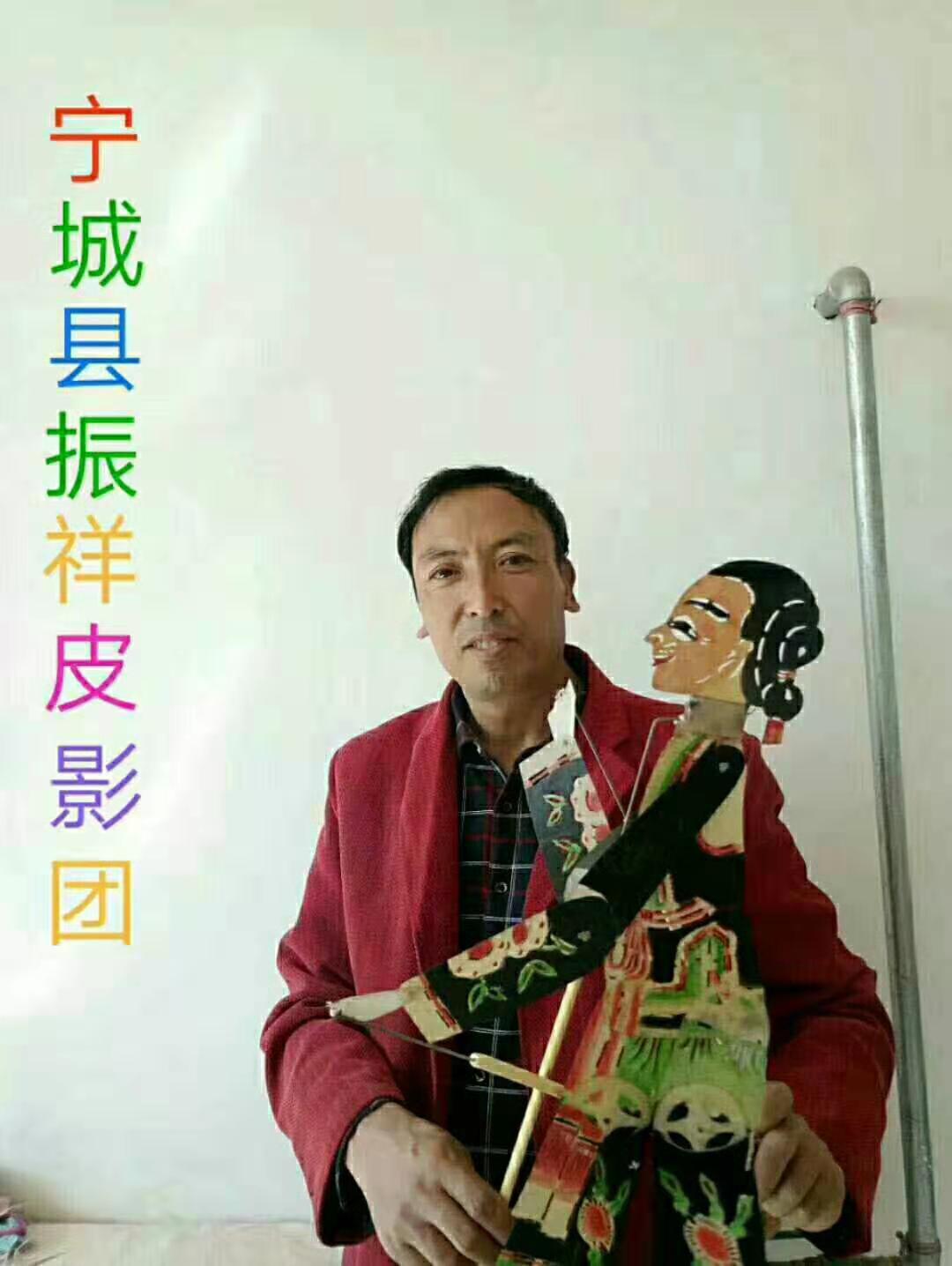 黄振祥,男,1966年出生。内蒙古赤峰市宁城县人。13岁跟父亲学雕刻皮影。唱响皮影。黄家皮影是祖传。我已从事皮影将近40个年头。主要雕刻皮影。 唱腔。 操纵影人, 他经常到各地区演出。2019年7月6号。赤峰广播电视台。直播生活,播放。 父亲黄玉明。是共产党员。在抗日时期唱皮影。 宣传抗日节目。与我八路军。高桥游击队。取得联系。共同抗日。哥哥唱皮影。唱到18岁。 也参加了中国人民解放军。以后父亲就把皮影事业传给了我。我现在有两个皮影团, 正在传承皮影事业。但我的皮影雕刻技艺。还得创新。这一优秀的民族传统技艺,急需进行保护。