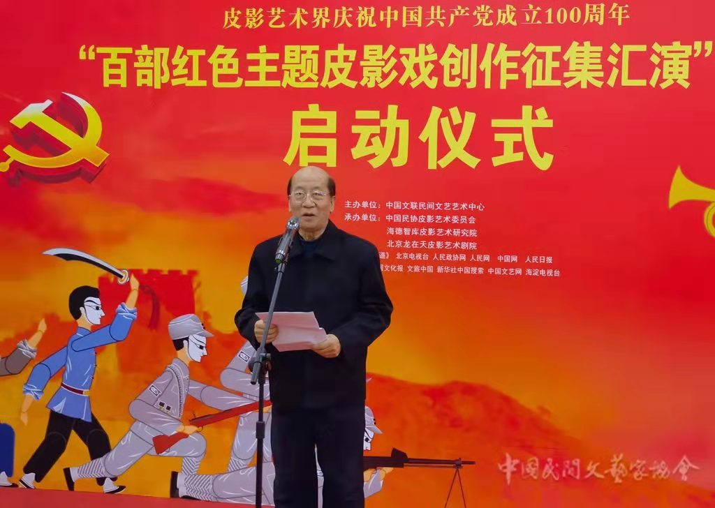 2021年是中国共产党成立100周年的大庆之年,为生动展现中国共产党团结带领中国人民不忘初心、牢记使命、艰苦奋斗的光辉历程,由中国文联民间文艺艺术中心主办,中国民协皮影艺术委员会、海德智库皮影艺术研究院、北京龙在天皮影艺术剧院承办的庆祝中国共产党成立100周年“百部红色主题皮影戏汇演”作品征集活动正式启动。