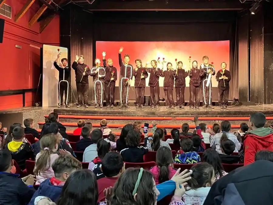在塞尔维亚演出现场,《九色鹿》收获了观众的热烈反响。演出还未开始,剧场外就排起了蜿蜒长队。尽管存在语言隔阂,但跨越文化的皮影美学依然点燃了观众热情:当演员举着荧光皮影穿越台前时,大人们情不自禁地惊呼着举起手机拍照:“Bravo!”小观众指着皮影惊喜地交头接耳,一边拍手一边朝舞台上张望。谢幕时,全体演员三次返场仍难平息观众如潮的掌声。塞尔维亚克拉古耶瓦茨剧院院长激动地说:“你们总是如此擅长大型又时尚的偶戏表演,这是一场震撼的演出,谢谢你们把它带到塞尔维亚!”