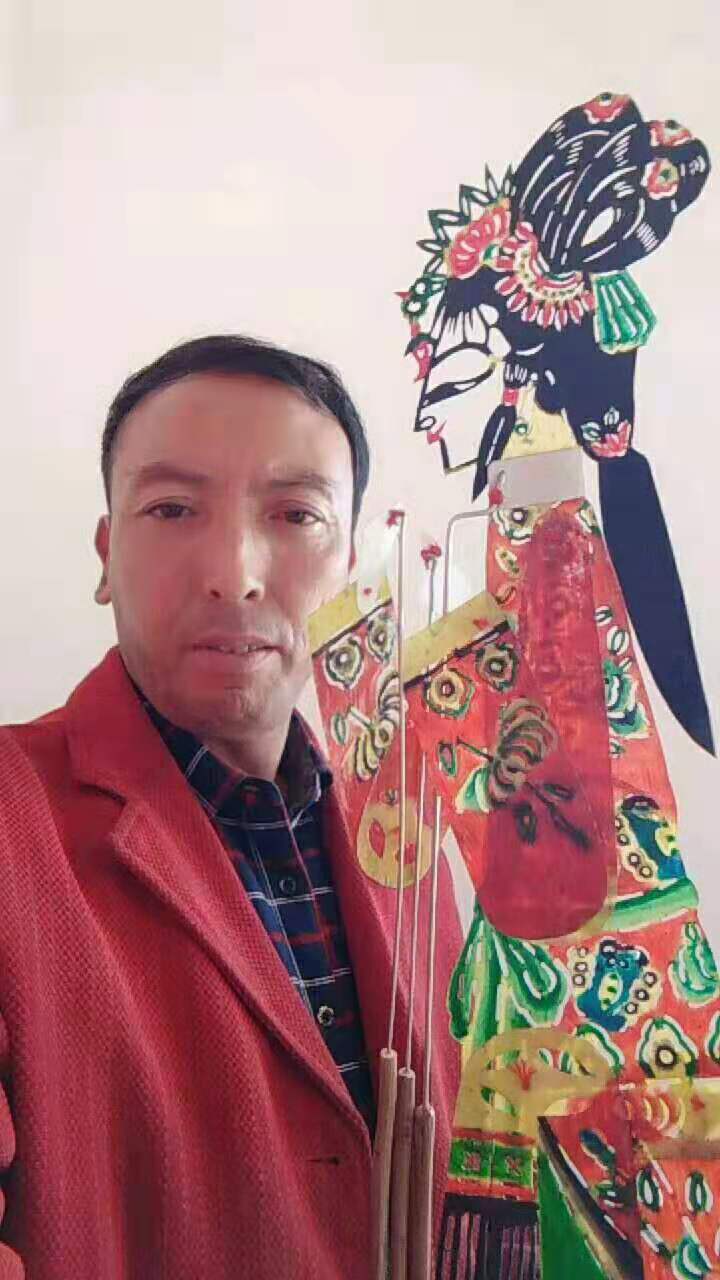黄振祥,男,1966年出生。内蒙古赤峰市宁城县人。13岁跟父亲学雕刻皮影。唱响皮影。黄家皮影是祖传。我已从事皮影将近40个年头。主要雕刻皮影。 唱腔。 操纵影人, 他经常到各地区演出。2019年7月6号。赤峰广播电视台。直播生活,播放。 父亲黄玉明。是共产党员。在抗日时期唱皮影。 宣传抗日节目。与我八路军。高桥游击队。取得联系。共同抗日。哥哥唱皮影。唱到18岁。 也参加了中国人民解放军。以后父亲就把皮影事业传给了我。我现在有两个皮影团, 正在传承皮影事业。但我的皮影雕刻技艺。还得创新。这一优秀的民族传统技艺,急需进行保护。