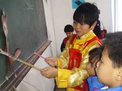 冯波:25岁,陕西人,身高1.36米。冯波在古城西安长大,从小喜欢书法,毛笔字写的非常漂亮,在皮影舞台剧《圆明园传奇》中他饰演康熙,并在剧中亲自提写“圆明园”三字,颇有些神似!表演能力也很强,在皮影舞台剧《红楼梦》中饰演一老道士。现任中国龙在天袖珍人皮影团二团副团长、雕刻室主任。