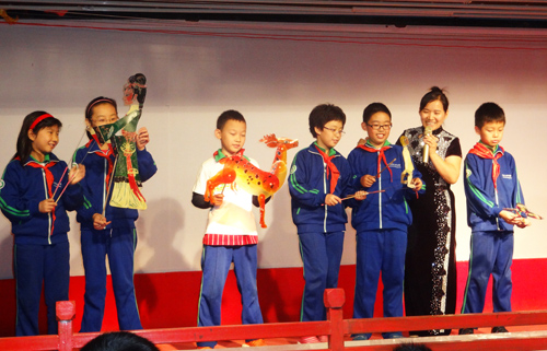 影人姐姐非常重视学生们对皮影艺术的求知,亲自担当主持,她要把更多的皮影知识分享给孩子们。