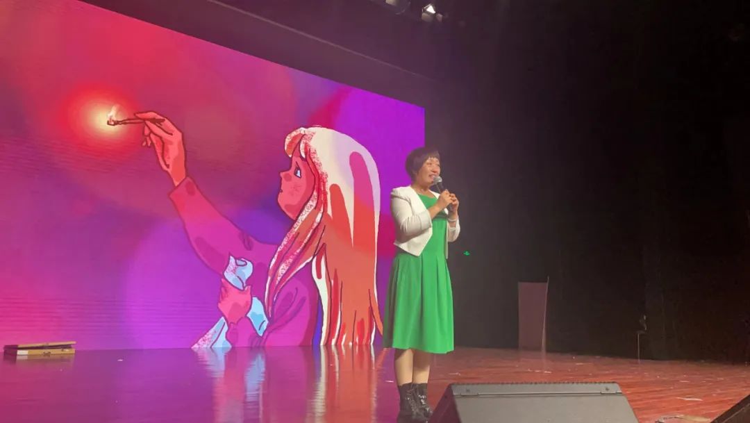 中国民协皮影艺术委员会副主任、国际木偶协会会员、著名旅日皮影艺术家包锋女士为获奖学校颁奖。